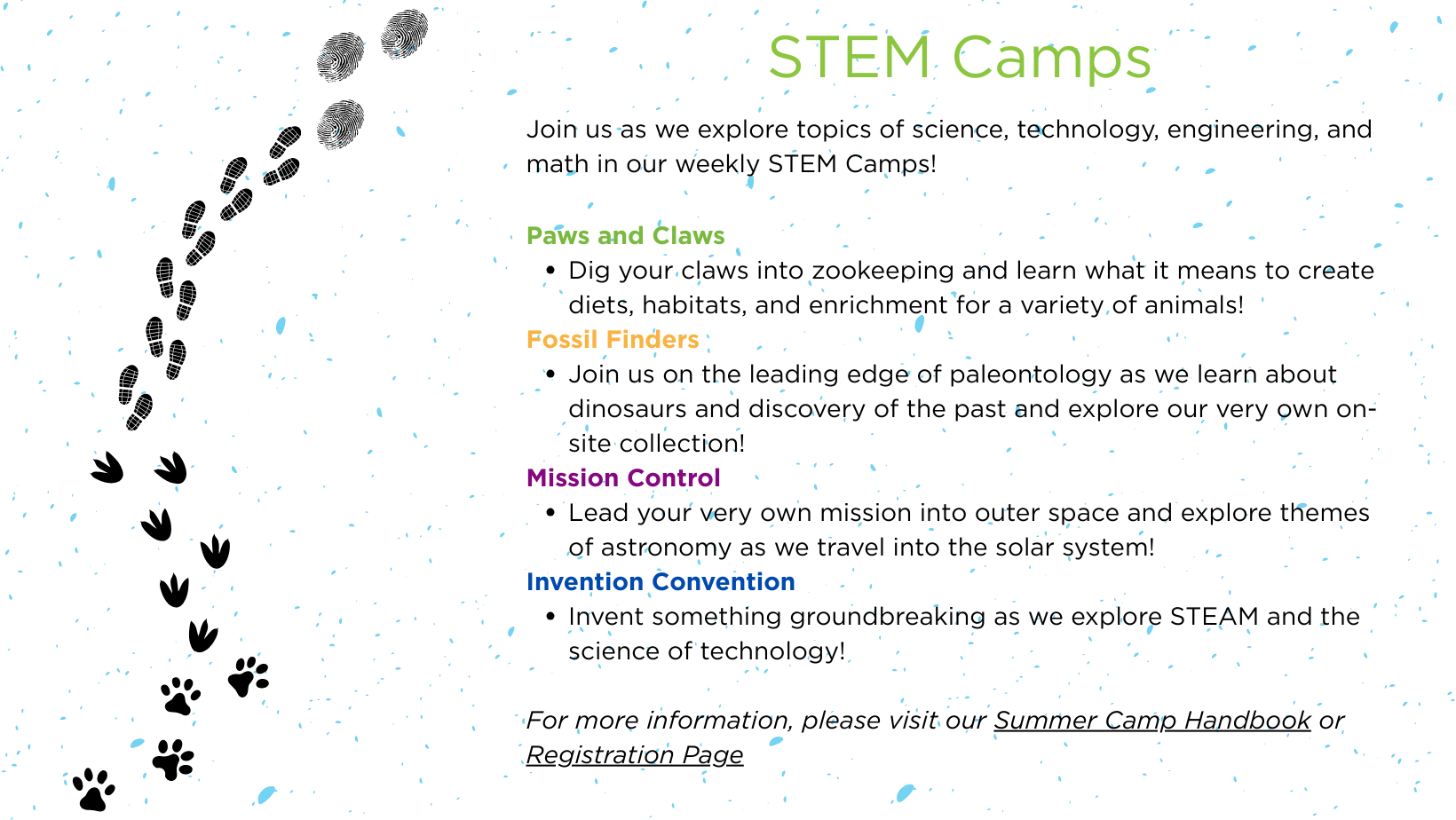 View the 2026 Summer Camp Handbook Click Here For Scholarships Registration for Summer STEM Camps opens FEBRUARY 2026